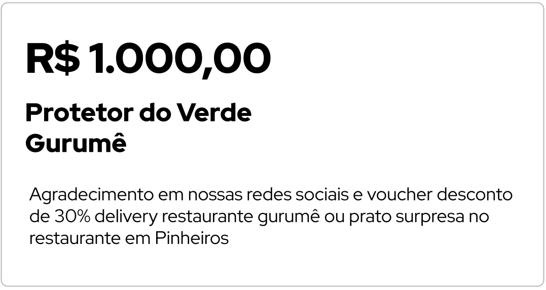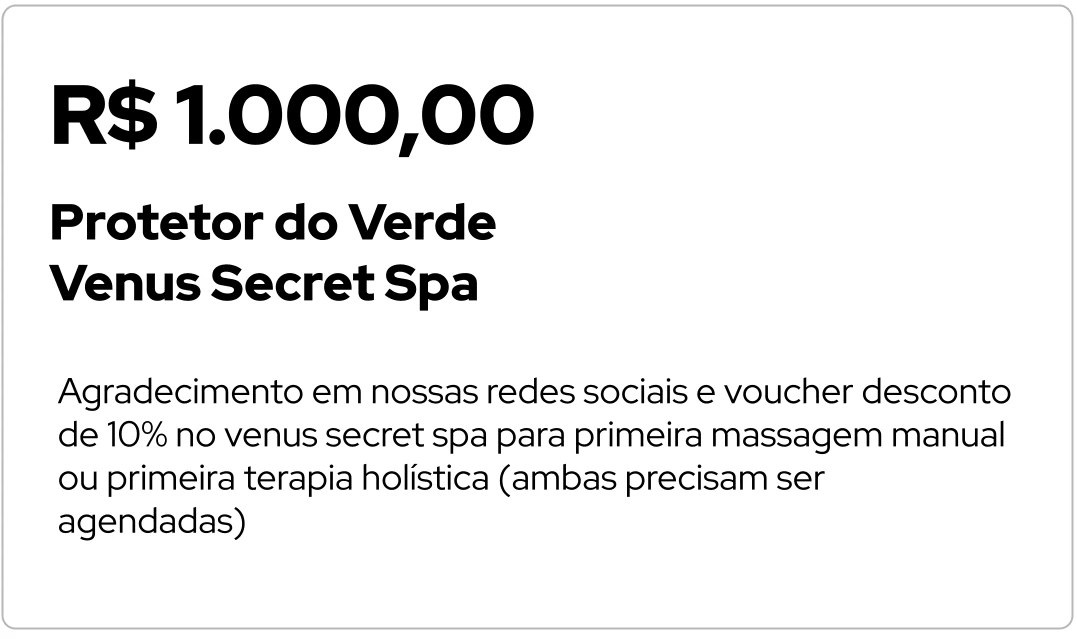 agradecimento em nossas redes sociais e Voucher desconto em estabelecimento parceiro3. Protetor do Verde - R$ 1.000,00