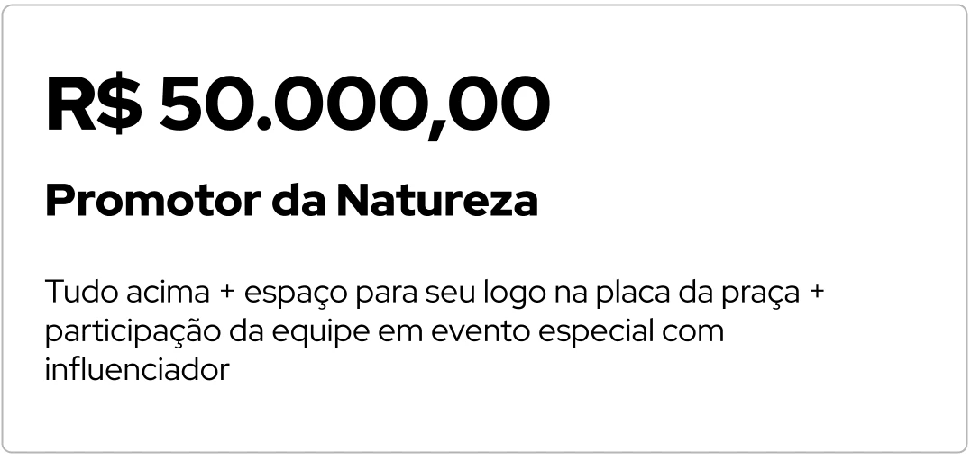 Tudo acima + um post e um story especial exclusivo promovendo a empresa3. Promotor da Natureza - R$ 50.000,00